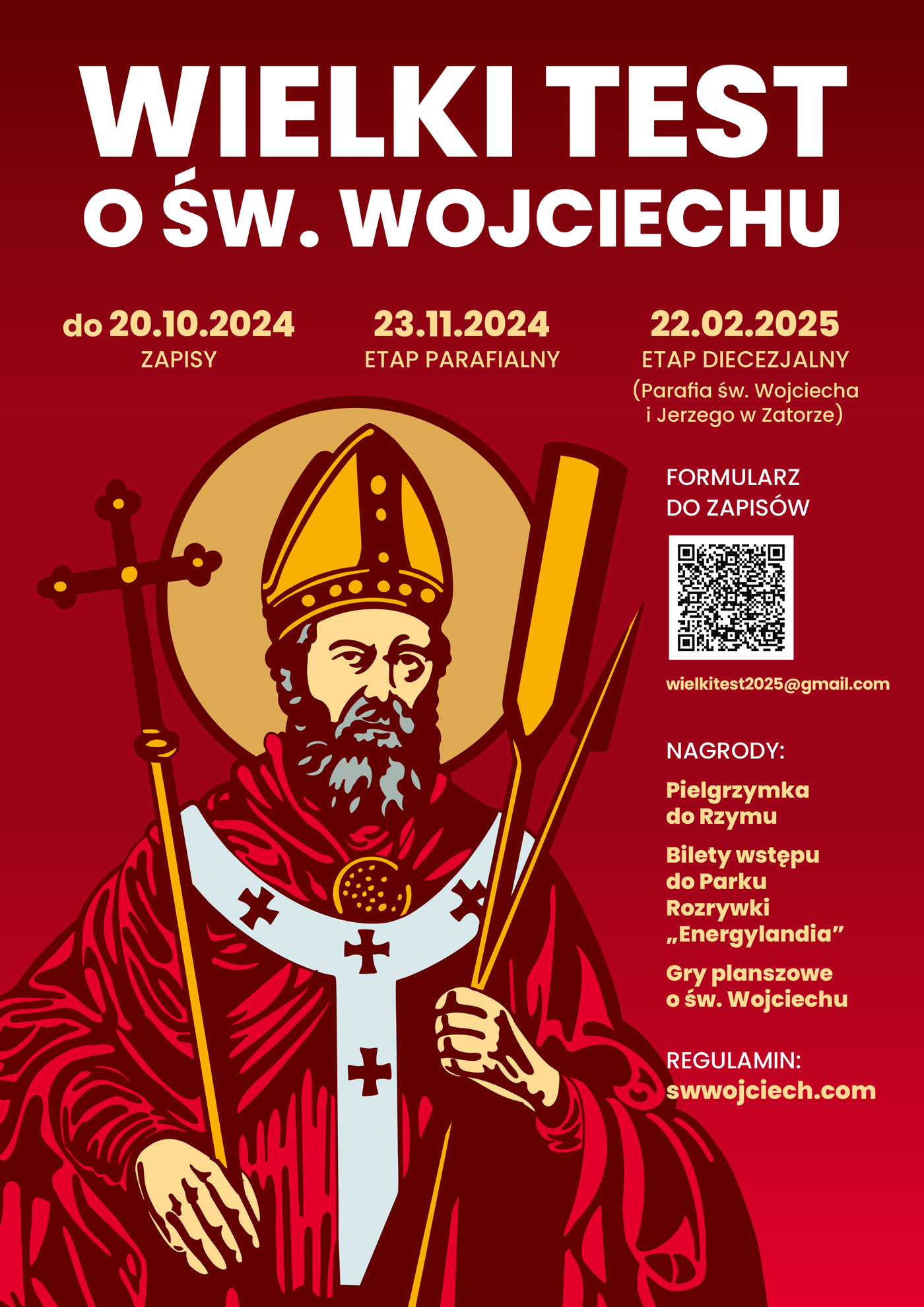 - Do 30 listopada 2024 roku należy przekazać Organizatorowi informację o tym, kto będzie reprezentował parafię w etapie diecezjalnym (na adres mailowy: wielkitest2025@gmail.com).
