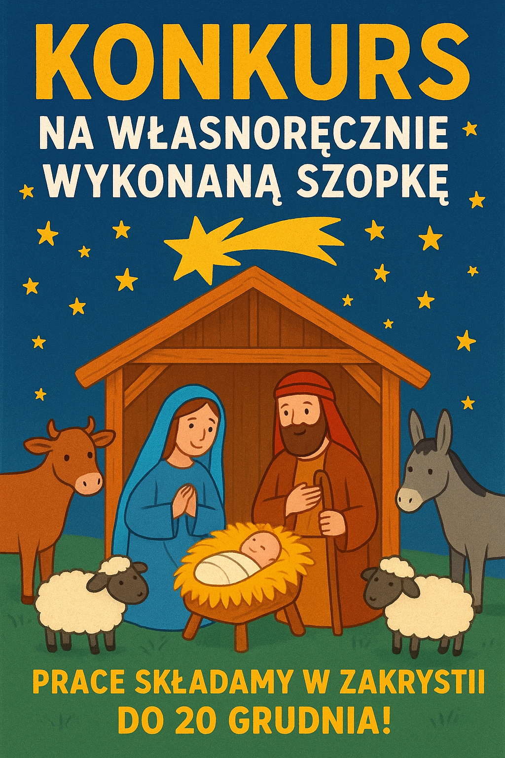Prace należy składać w zakrystii do 20 grudnia, dołączając metryczkę z podaniem imienia i nazwiska, klasy i szkoły oraz numerem kontaktowym do rodziców.